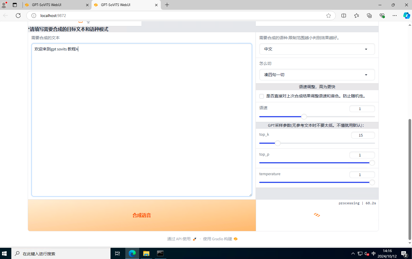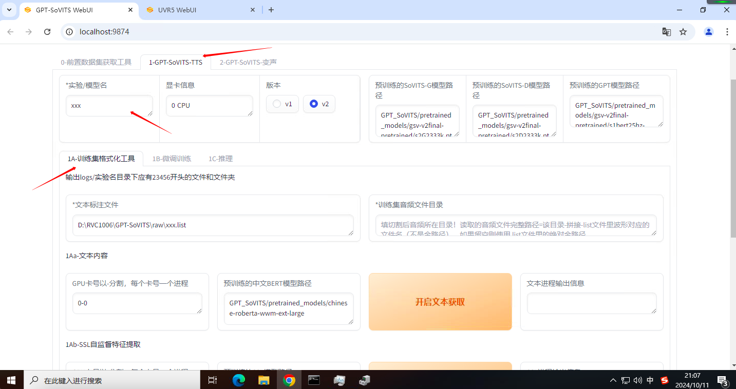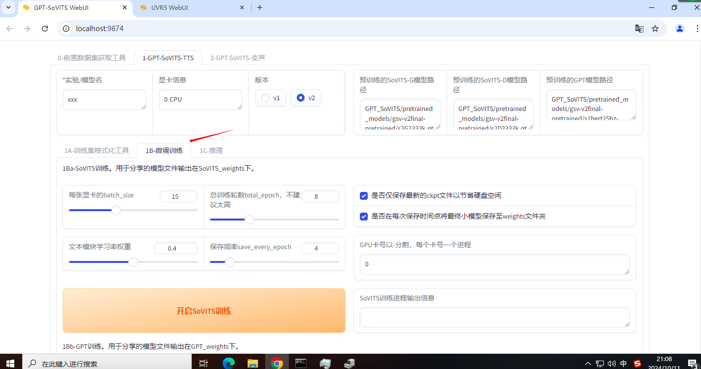 先点开启SoVITS训练,训练完后再点开启GPT训练