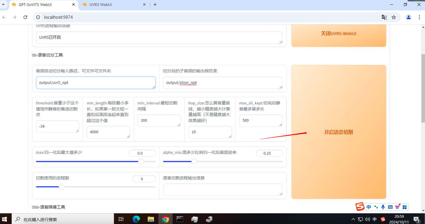 - max_sil_kept 切割连贯性,不同音频不同调整,一般保持默认即可。
