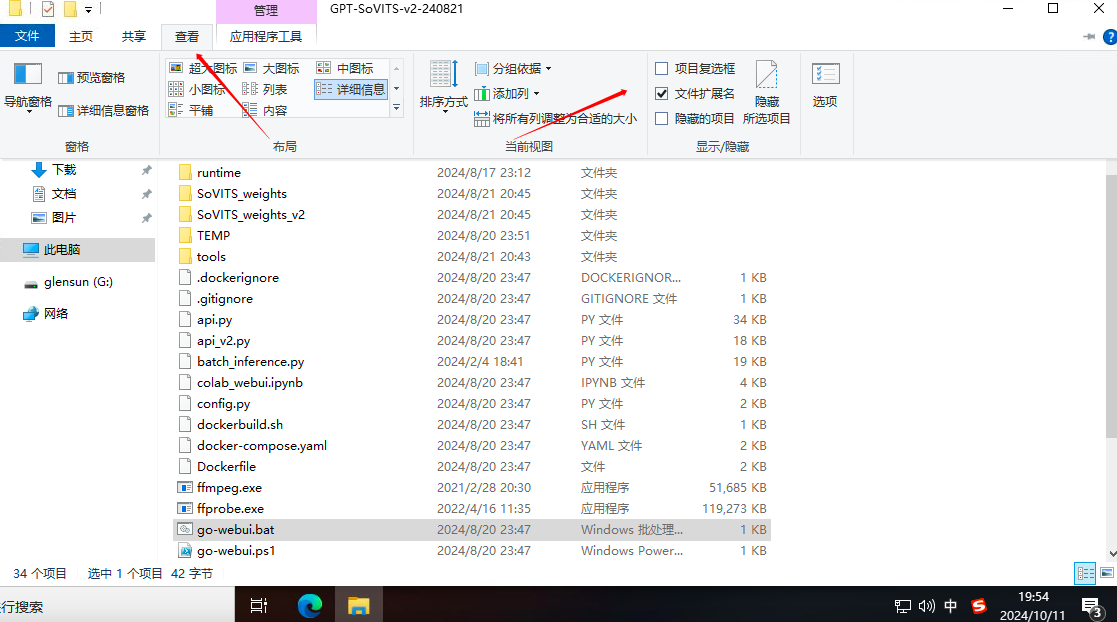 如果没有.bat的后缀可以在查看里打开文件扩展名,后面也会遇到很多需要后缀的: